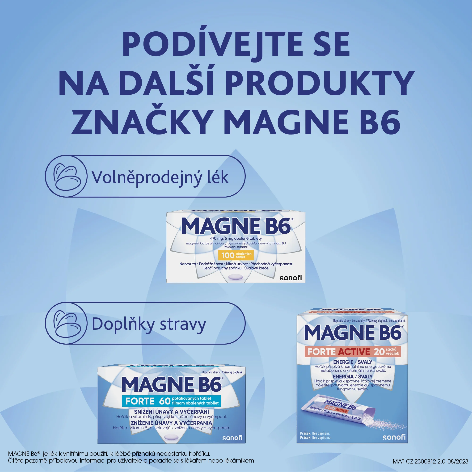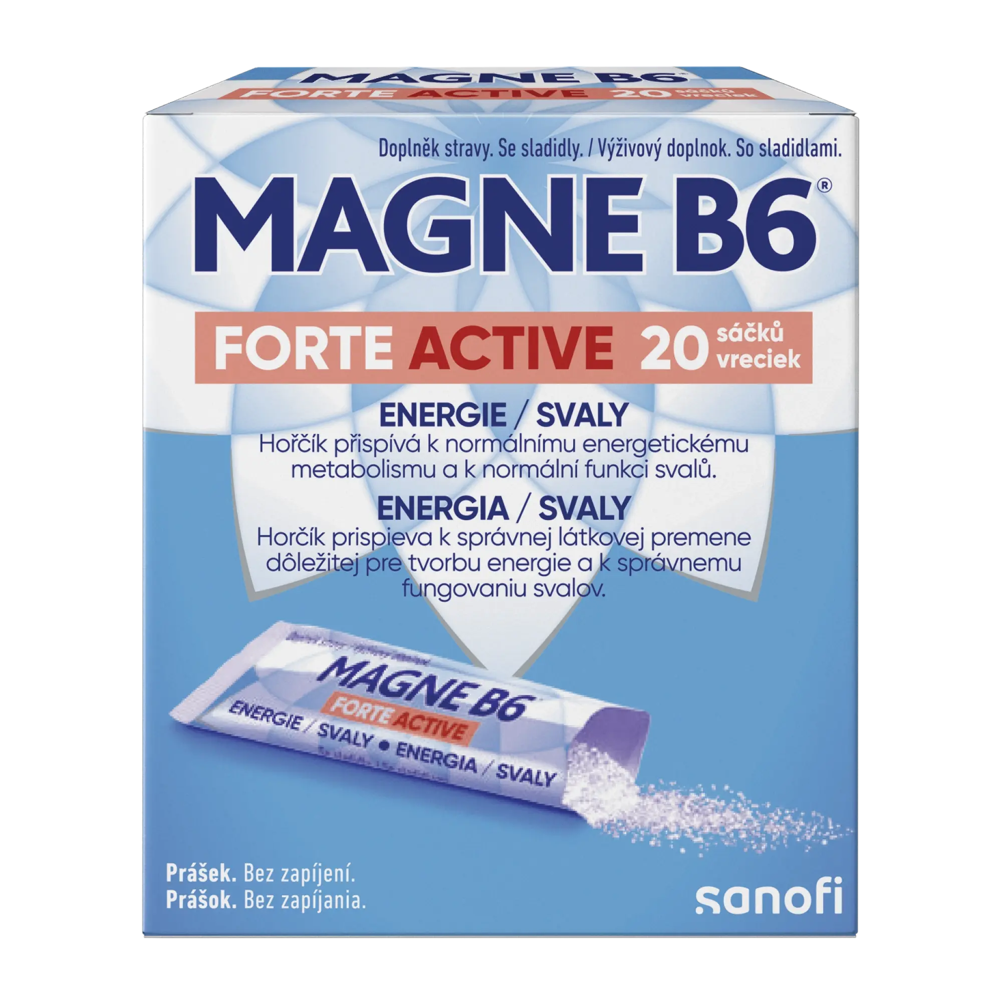 Magne B6® Forte Active je doplněk stravy ve formě rychle rozpustných granulí s citrónovou příchutí, který obsahuje hořčík a vitamín B6, které přispívají ke snížení únavy a vyčerpání.